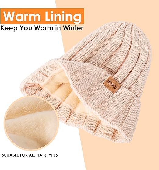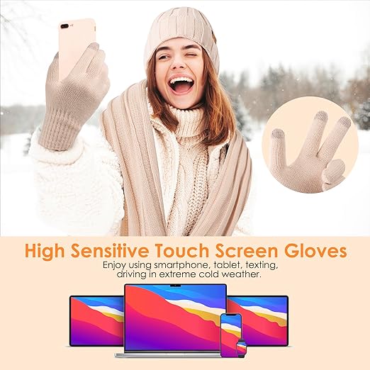 Womens Winter Beanie Warm Hat Scarf Touchscreen Gloves Set with Fleece Lined Skull Caps Gifts for Women Men